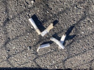 これらのごみは、ポイ捨てされたものが風にあおられて集まり、側溝に溜まってしまったものと考えられます。